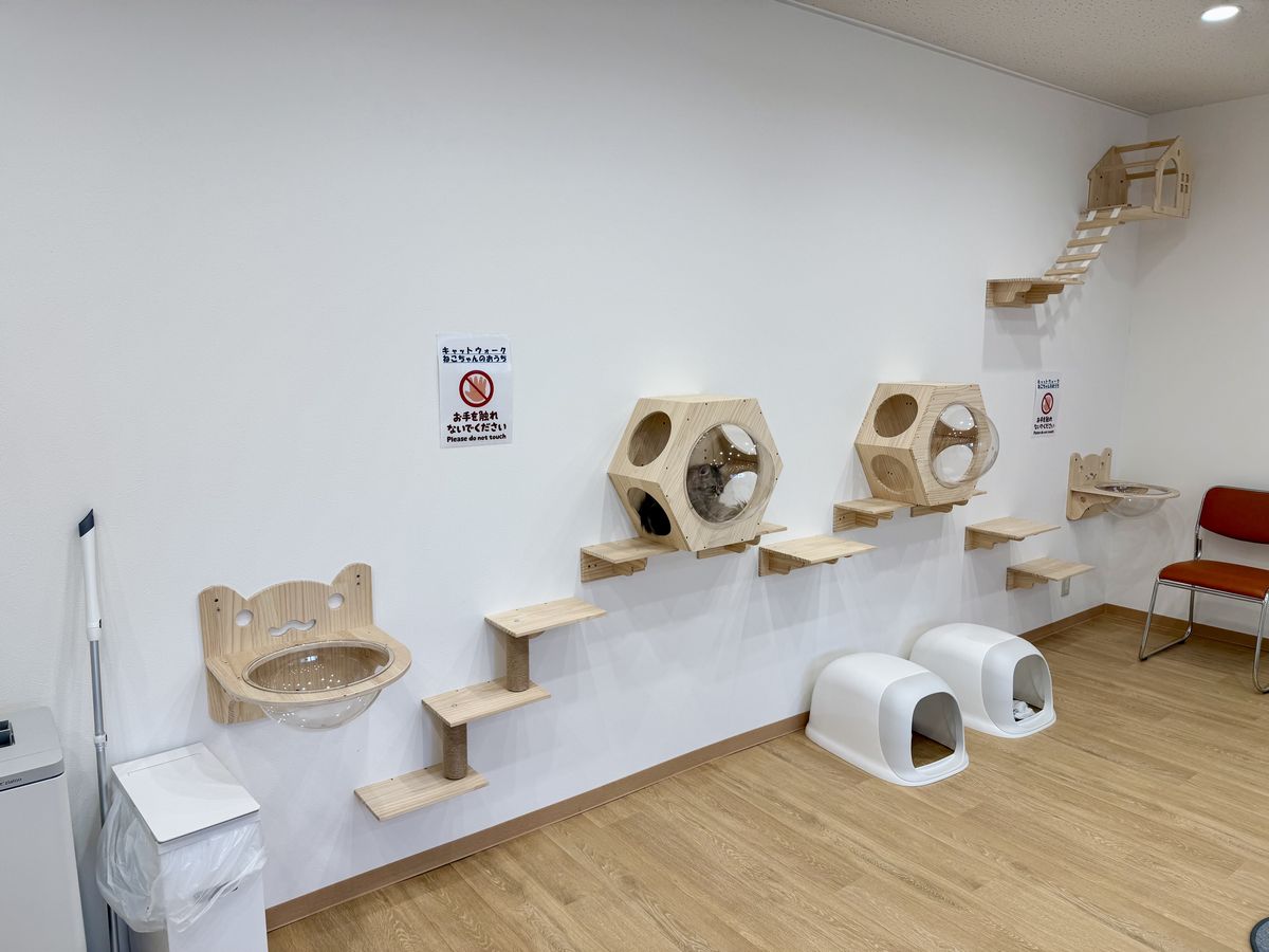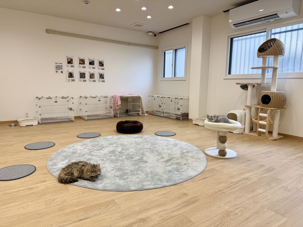 担当の方の説明によると、『ANELLA CAFE 大阪鶴見緑地店』では保護犬や保護猫が人との関わりの中で安心して過ごし、新しい家族と出会うための場としての役割を担うと同時に、就労継続支援B型事業所としての機能を備え、障がいのある方が保護犬や保護猫のお世話や接客などの業務を通じて、社会参加に向けた実務経験を積むことができる施設になっているそうです。