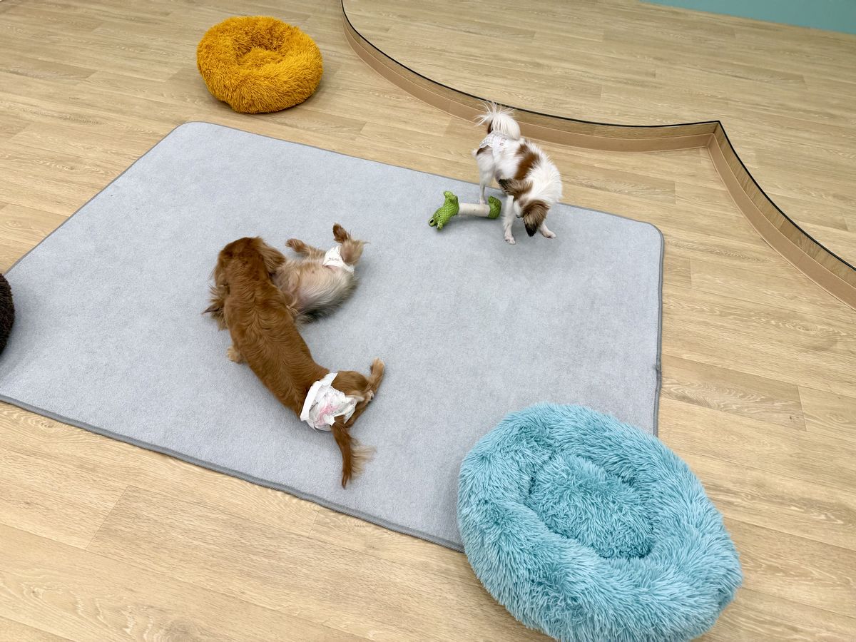 じゃれ合ったり、おもちゃをくわえて持って来てくれたりと、わんちゃん達が楽しく過ごしている様子がうかがえます。