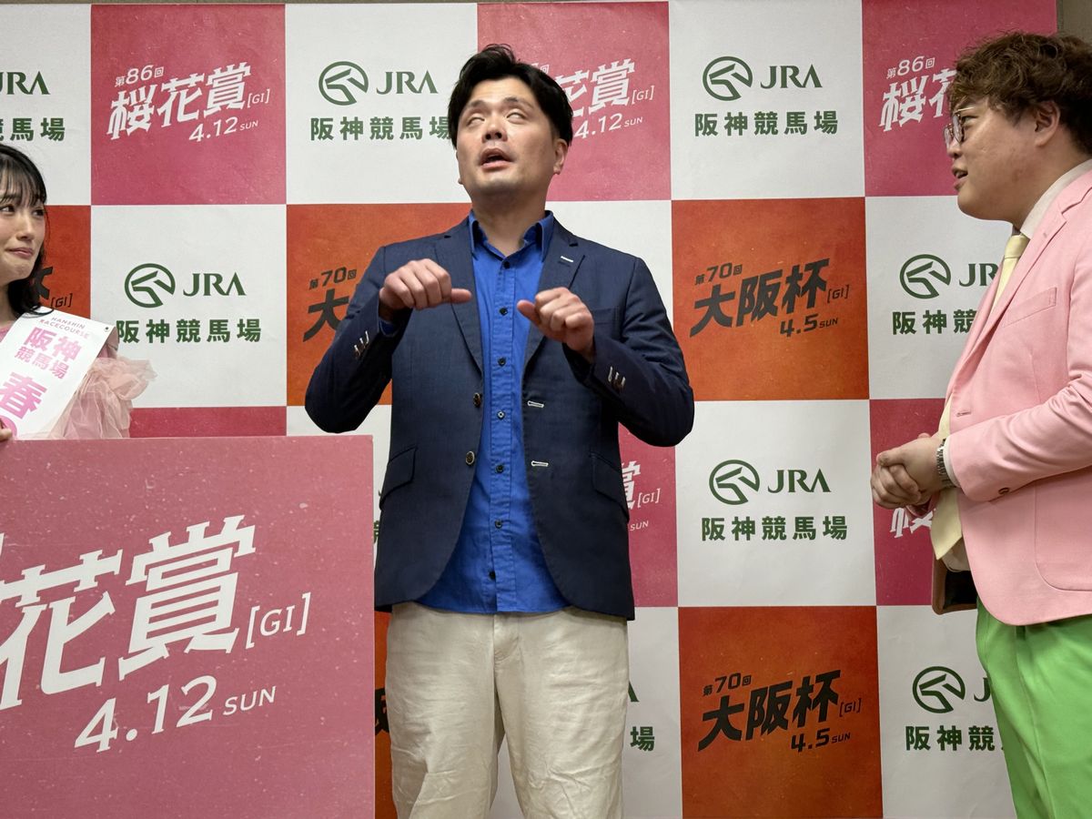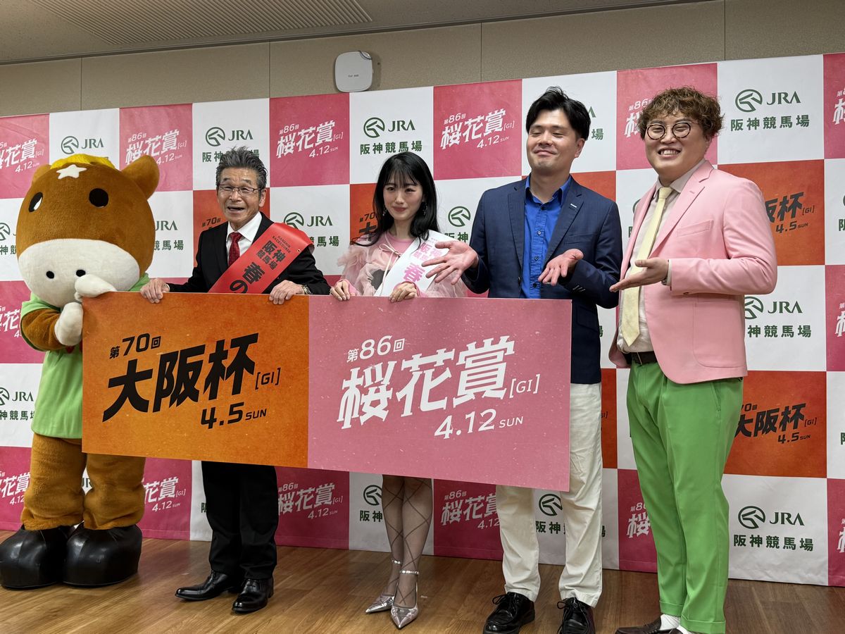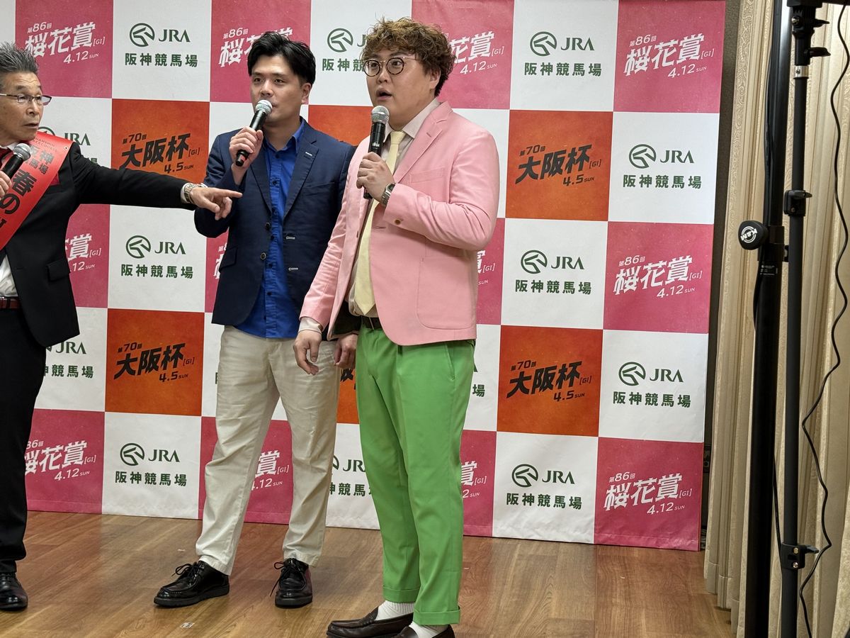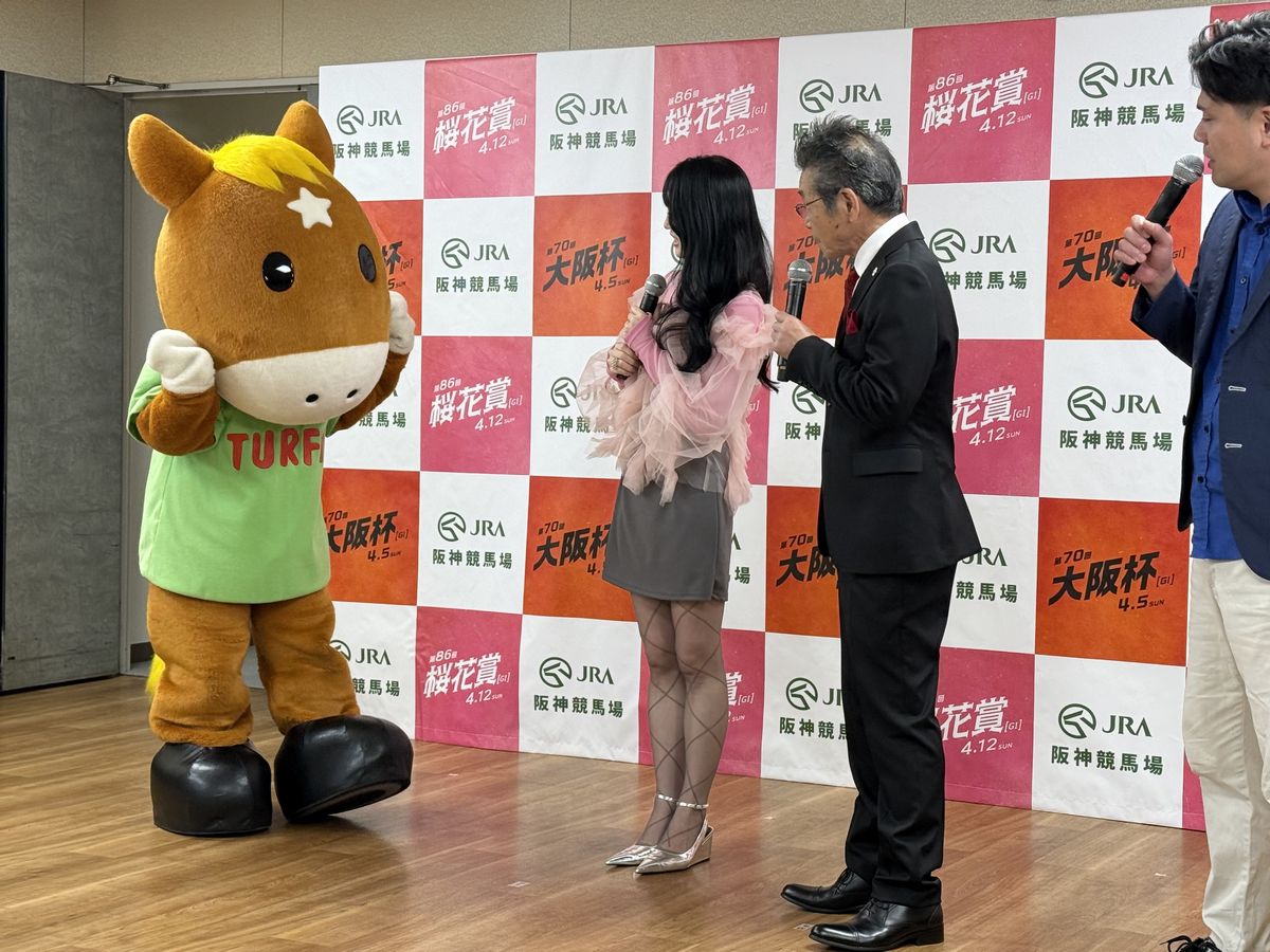 寛平さんは、「僕は今宝塚に住んでるんで、阪神競馬場にはしょっちゅう行ってます。せやから阪神競馬場はもう庭みたいなもんなんです。大阪からも大阪杯と桜花賞を応援します!」と意気込みを述べられていました。
