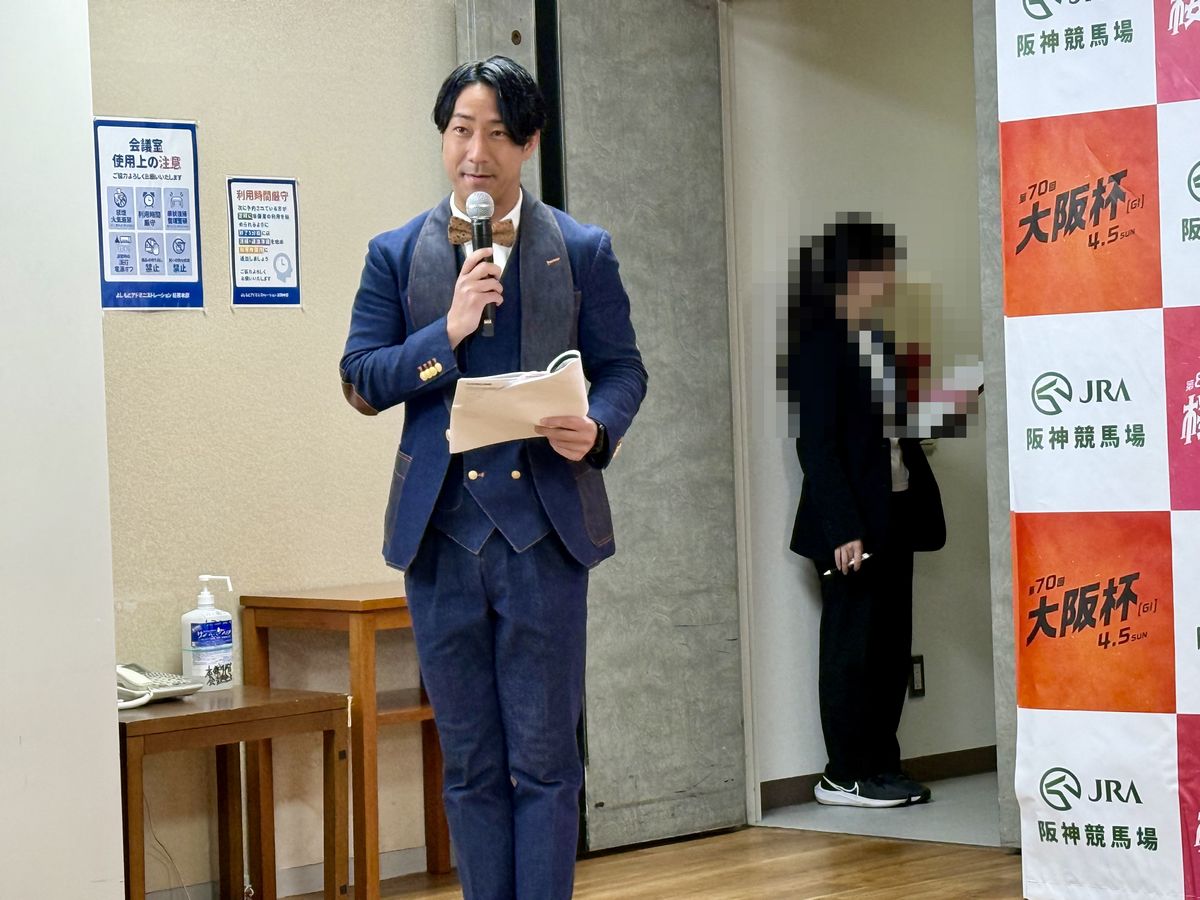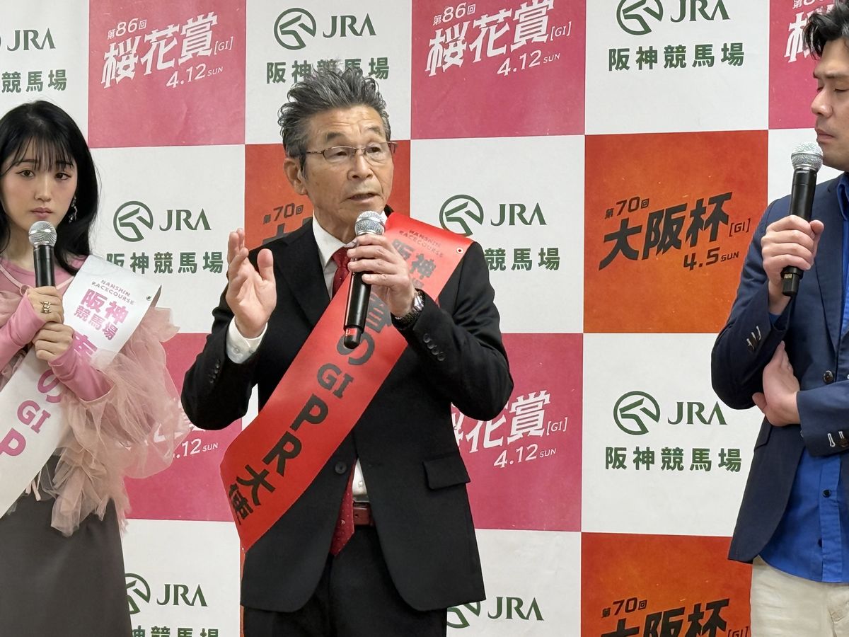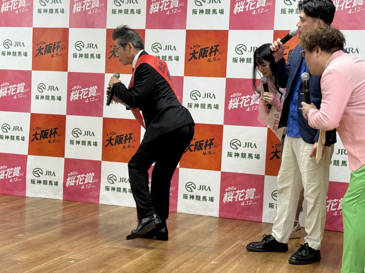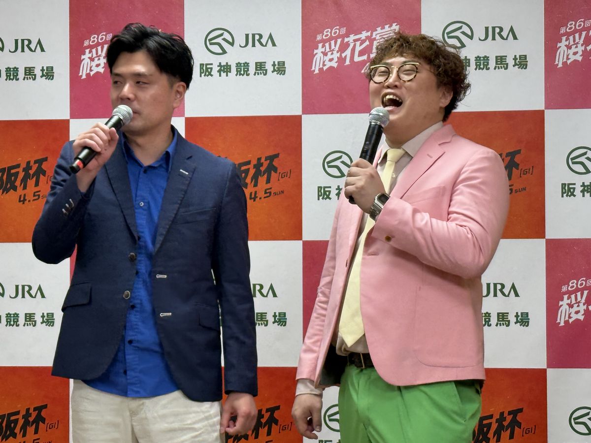 寛平さんは、「僕は今宝塚に住んでるんで、阪神競馬場にはしょっちゅう行ってます。せやから阪神競馬場はもう庭みたいなもんなんです。大阪からも大阪杯と桜花賞を応援します!」と意気込みを述べられていました。