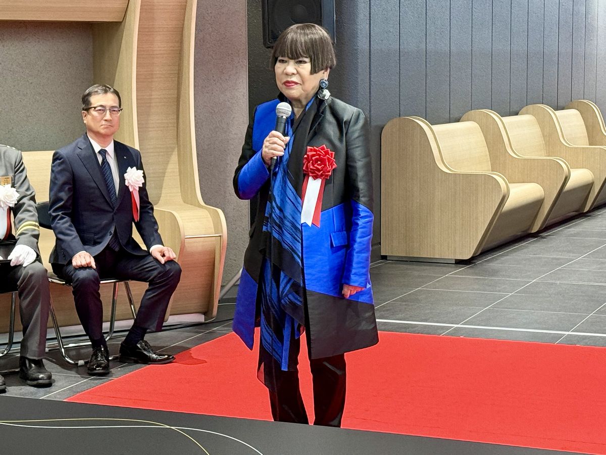 コシノさんは、「GRAN 天空」のアテンダントの制服をデザインされ、「私は岸和田の出身で、岸和田との縁が深い南海電鉄でデザインを担当させていただけたことに幸せを感じ、世界に誇る観光列車になってほしいです。」と挨拶をされました。