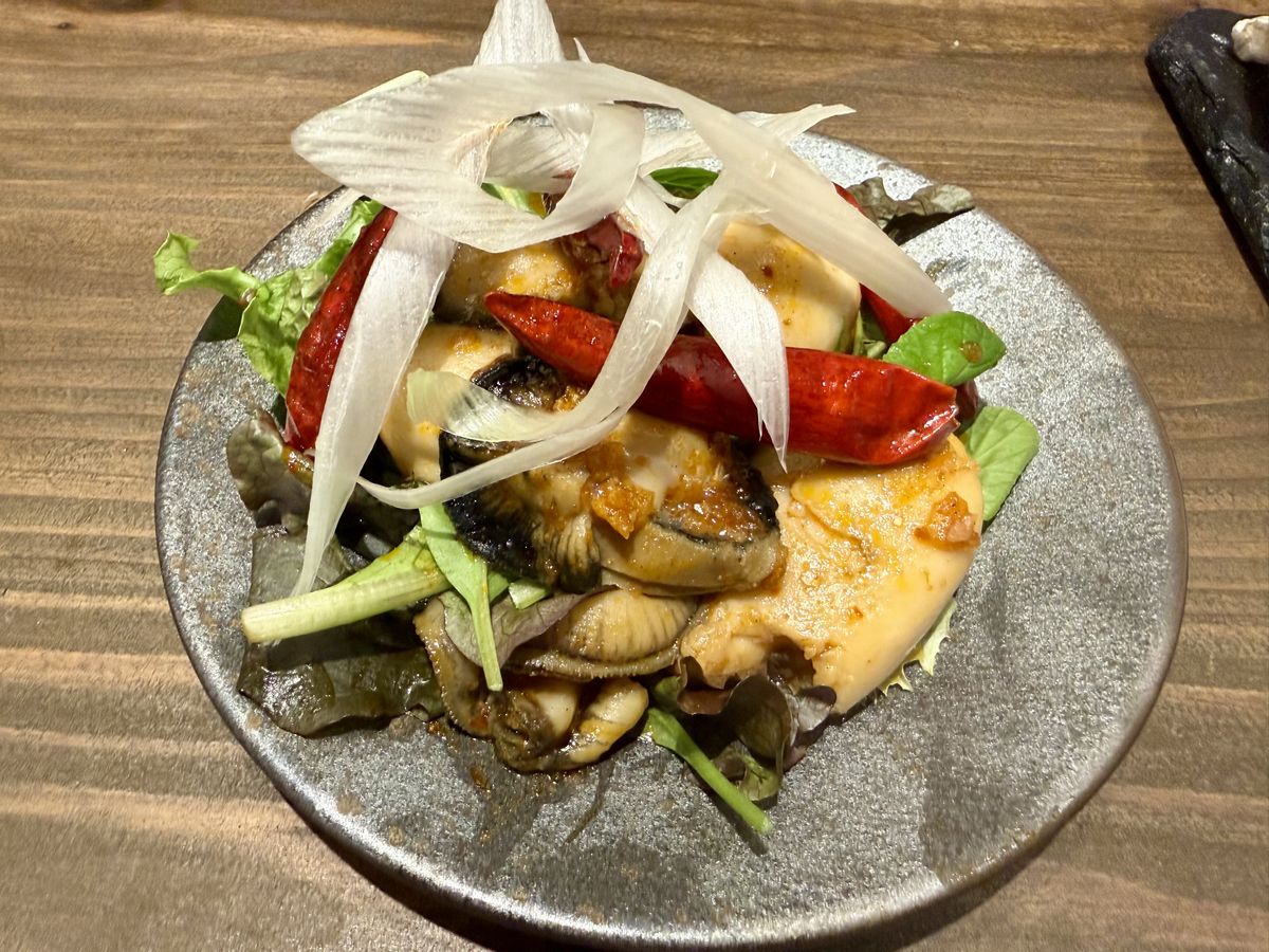 こちらは麻婆よだれ牡蠣で、ピリッとした辛さと牡蠣の旨みがマッチした一品です。