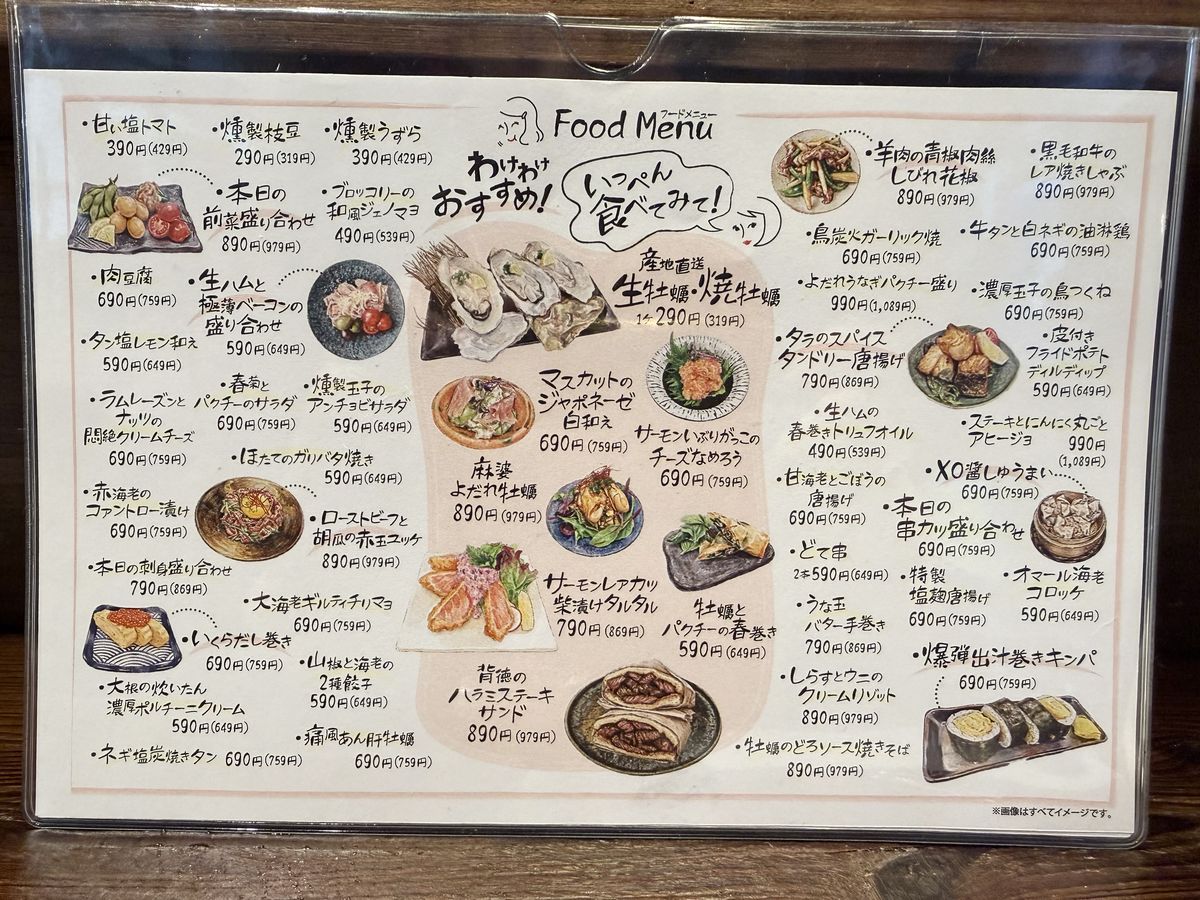 担当の方の説明によると、店名の由来は関西弁で使われる「分ける」ことを意味する「わけわけ」から着想を得て、産地直送の新鮮な魚介を中心に、フレンチや中華のエッセンスも取り入れたジャンルレスなアテと酒を気軽に楽しめるネオ立ち呑みスタイルの酒場としてオープンしたそうです。