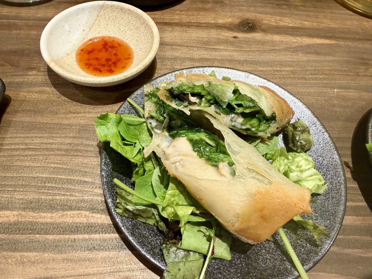 こちらは牡蠣とパクチーの春巻きで、チリソースをつけて食べるとサクッとした食感に、春巻きの中からあふれる牡蠣のコクとパクチーの爽やかな香りがよく合う一品です。