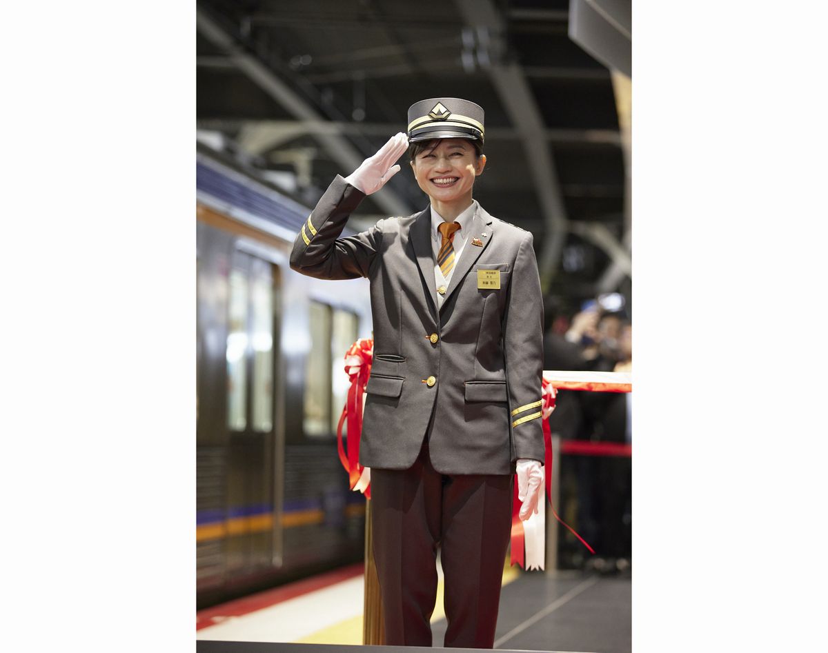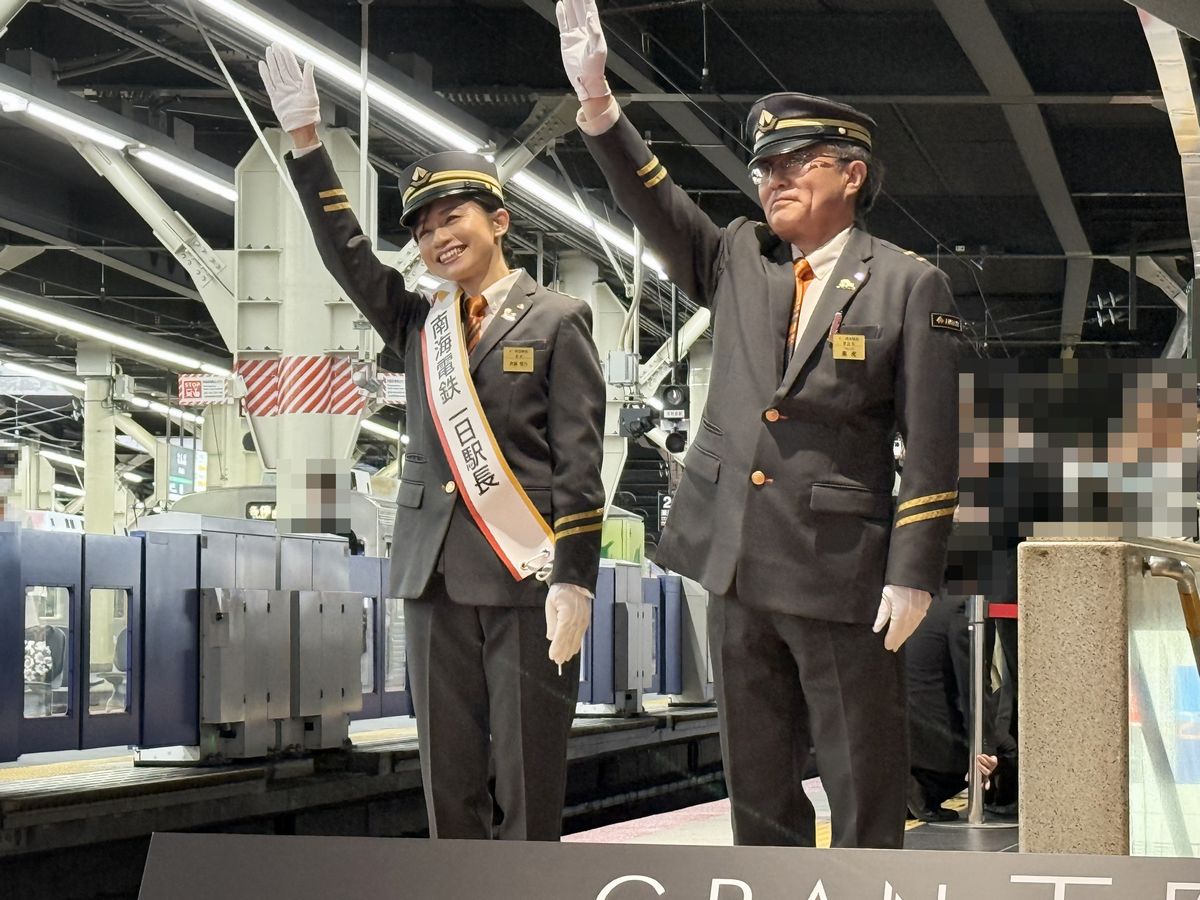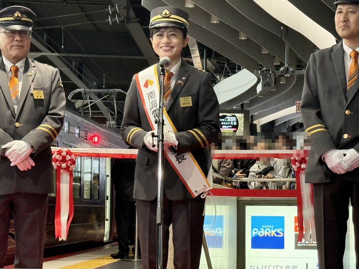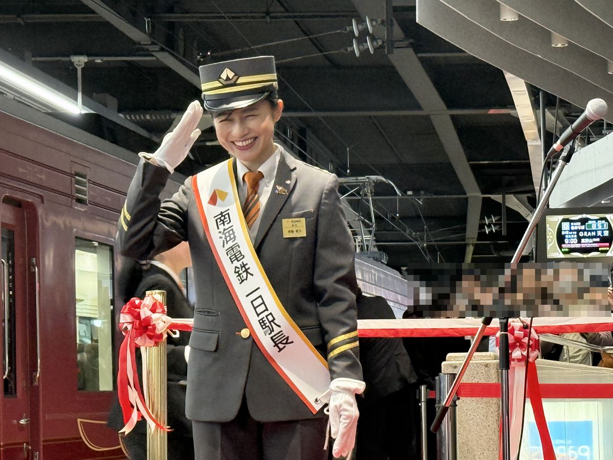 この日の斉藤さんは南海電鉄の制服姿で出席し、一日駅長を務めます。