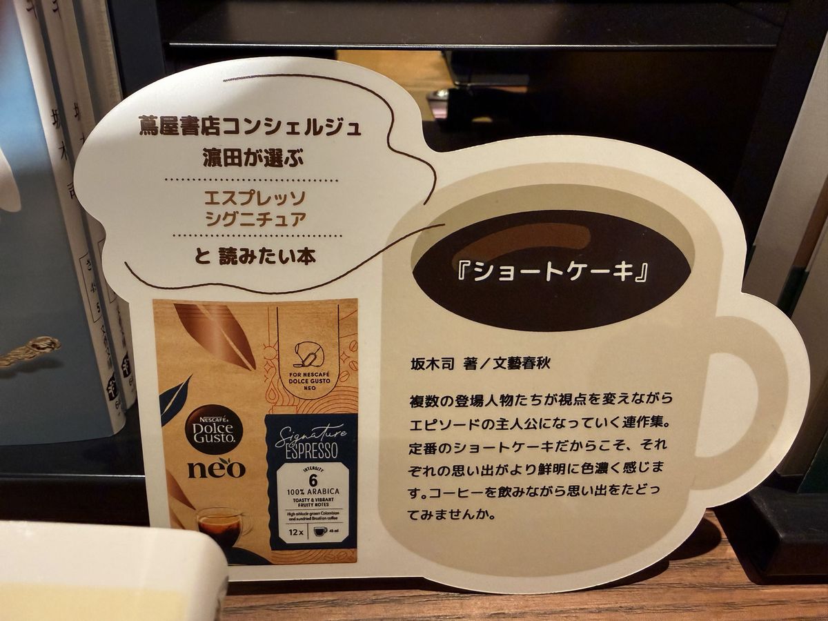 蔦屋書店のコンシェルジュの方が、『ネスカフェ ドルチェグスト ネオ』のコーヒーに合わせた本を解説付きでセレクトされています。