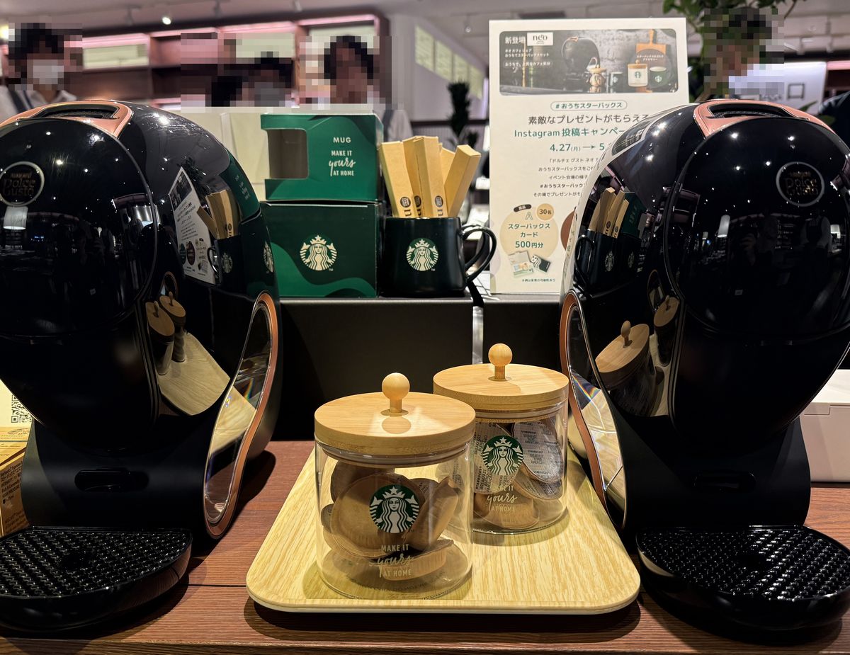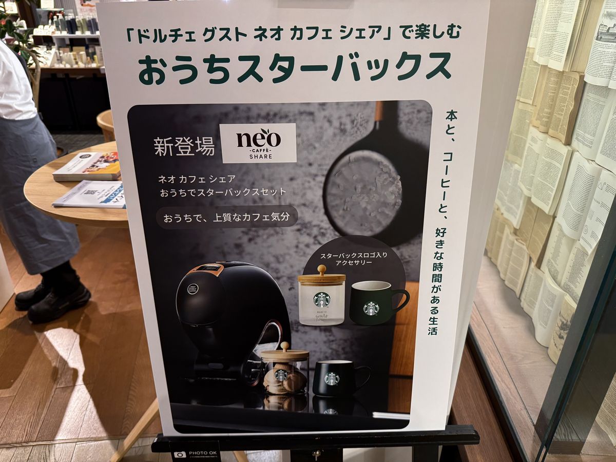 担当の方の説明によると、『おうちスターバックス 本と、コーヒーと、好きな時間がある生活』は、ネスレ日本株式会社のコーヒーメーカー『ネスカフェ ドルチェ グスト ネオ』で楽しむスターバックス コーヒーのメニューと、蔦屋書店のコンシェルジュの方による選書を掛け合わせた自分らしい時間の過ごし方を提案するポップアップイベントとなっているそうです。