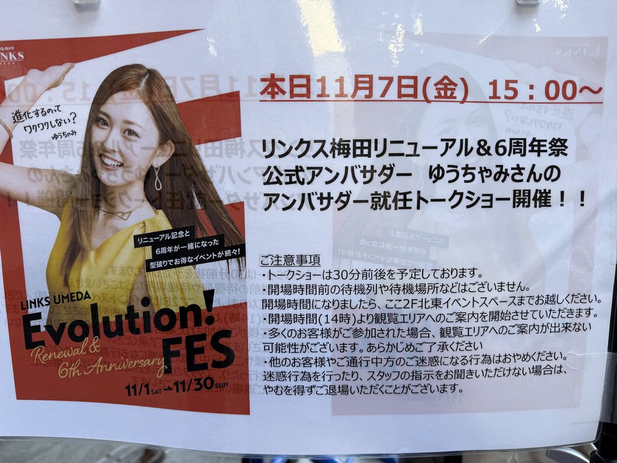 さらにこの日は、『リンクス梅田リニューアル&6周年祭公式アンバサダー ゆうちゃみさんのアンバサダー就任トークショー』も開催されました。